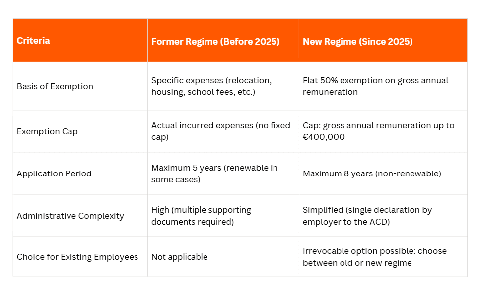 Simplified Structure: The new regime replaces the previous system based on the deductibility of specific expenses (such as relocation, housing, or schooling costs) with a flat-rate approach, thereby reducing the administrative burden for both employers and employees.